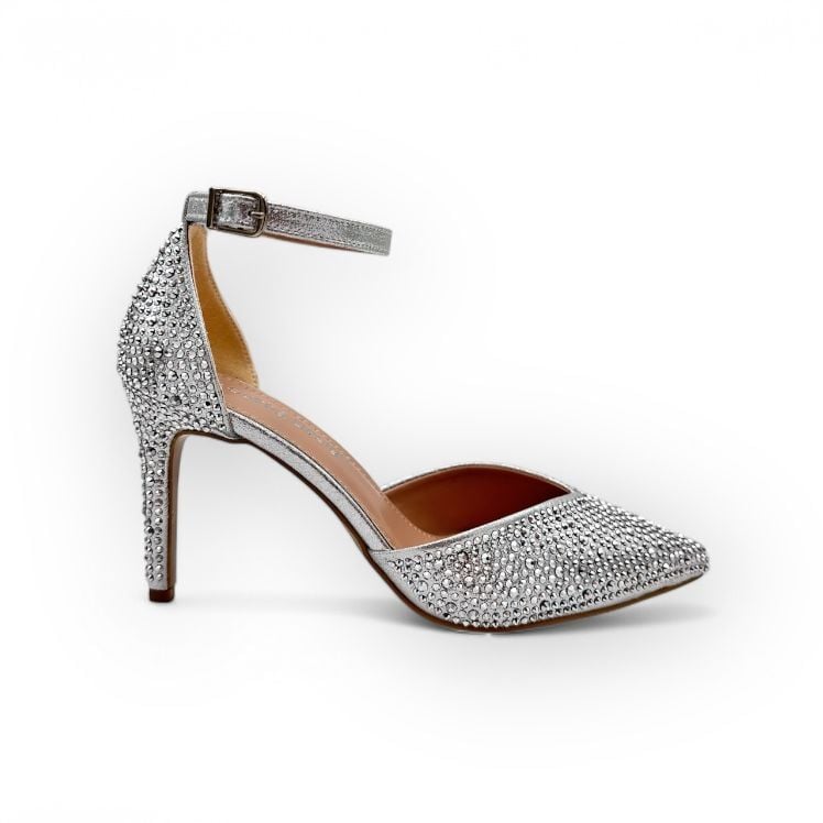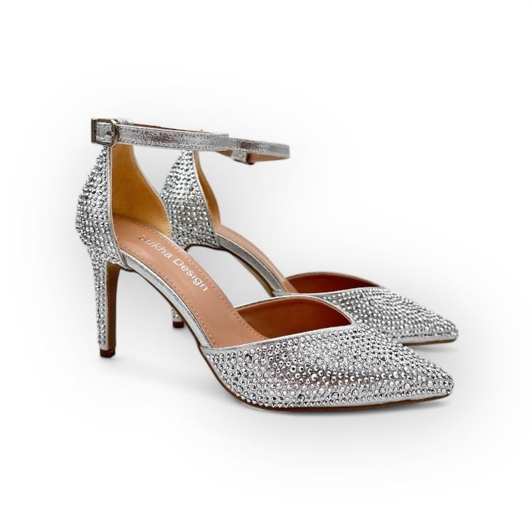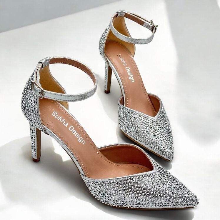 Diana Abiye Ayakkabı – Gümüş Taşlı Hakiki Deri, 9 cm Topuk