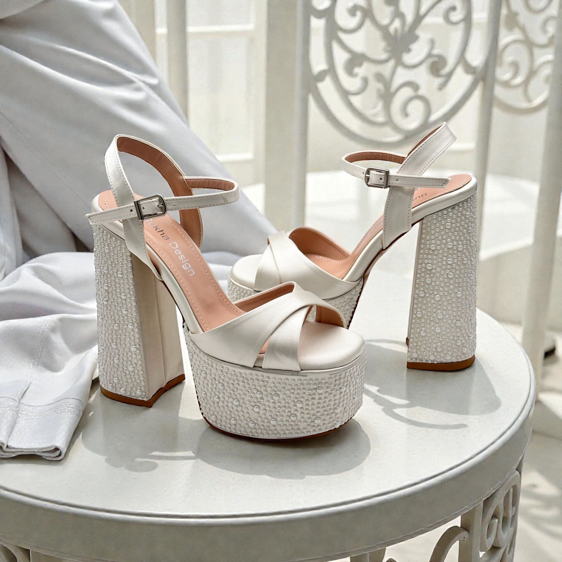 Elsa Abiye Ayakkabı, tamamen el yapımı ve dış yüzeyinde saten, iç taban astarında hakiki deri kullanılarak tasarlanmış özel bir gelin ve abiye ayakkabısıdır. Kırık beyaz rengi ile şıklığı ön plana çıkarır. 15